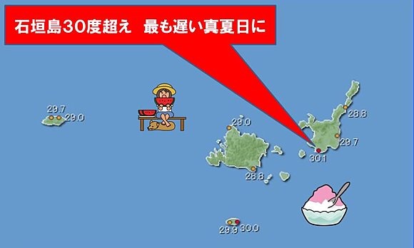 沖縄県の石垣島では、きょう(19日)の最高気温が30度1分に達し真夏日になりました。
